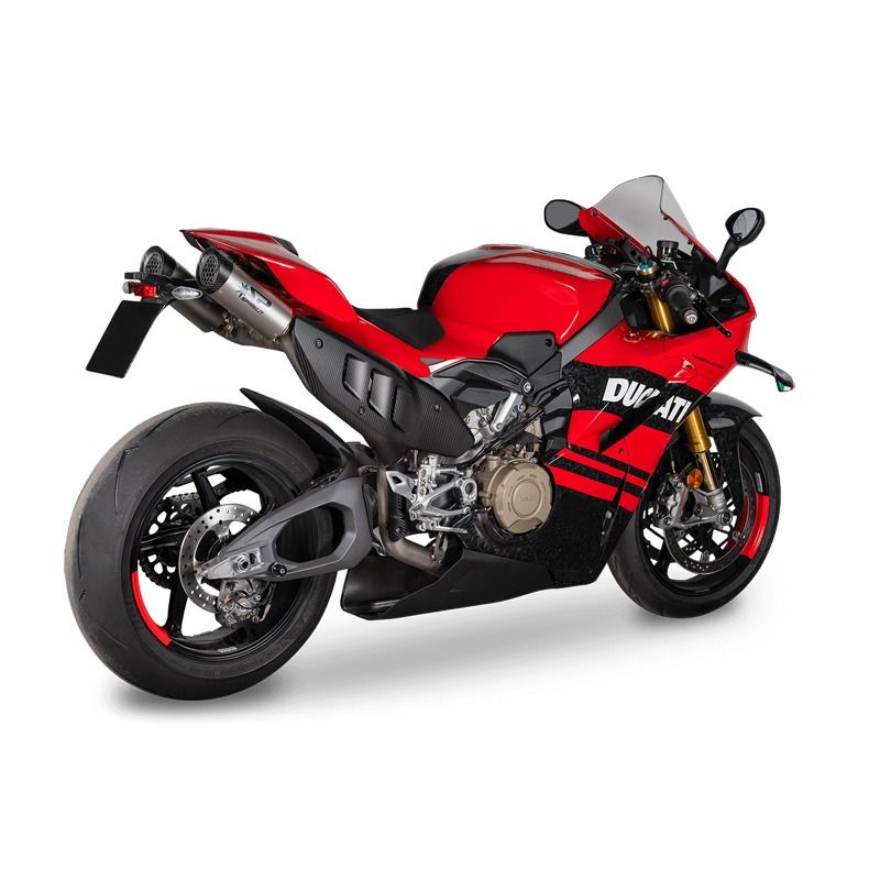 Nach umfangreichen und sorgfältigen Forschungen in Bezug auf Leistung und Stil ist unser neues Komplett-Auspuffsystem für die Ducati V4 2025 nun erhältlich. Es ist das Ergebnis intensiver technischer Entwicklung, der in der Weltmeisterschaft gesammelten Erfahrungen und der Zusammenarbeit mit einem der wichtigsten und aufstrebenden italienischen Designstudios. Es wurde entwickelt, um maximale Leistung, Gewichtsreduzierung und verbesserte thermodynamische Effizienz zu gewährleisten, und stellt eine echte Konzentration fortschrittlicher Technologie dar.