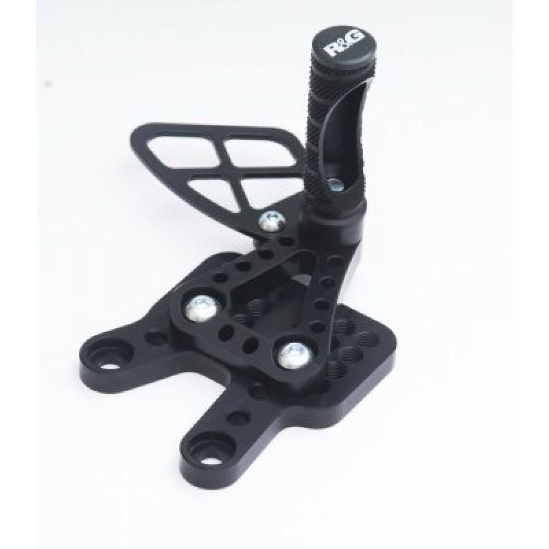 R&G Fußrastenanlagen bestehen aus hochwertiger 6082-Aluminiumlegierung und sind dadurch robust und leicht. Um allen Fahrern gerecht zu werden, ist das Set elffach verstellbar. Die Fußrasten sind für maximalen Halt geriffelt.