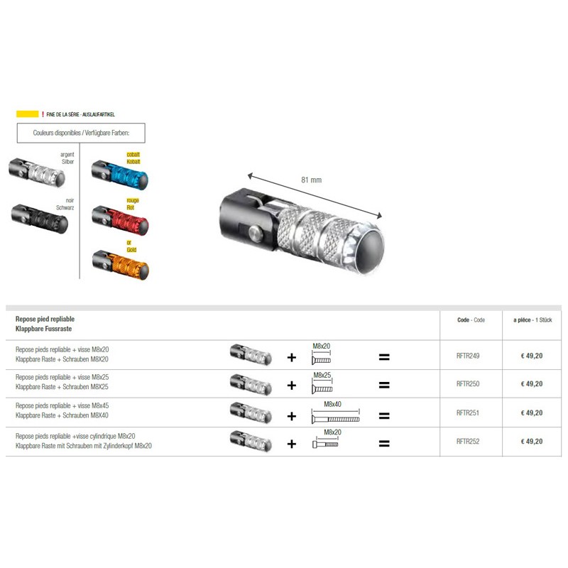 Befestigung mit M8-Schrauben (Gewinde in der Fußstütze)