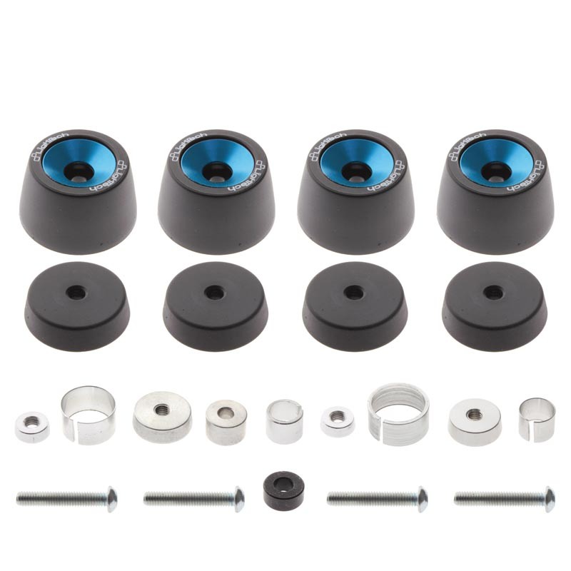 - Radachsenschutz-Kit: Untere Gabel und Schwinge - Neues Design: Verbesserte Linienführung und erhöhter Aufprallschutz - Extrem widerstandsfähige Nylonkonstruktion mit eloxiertem Aluminiumeinsatz - Maximaler Chassis-Schutz bei einem Sturz - Montage über Gewindestange durch die Radachse oder Kontermutter: Präzise und sicher - Speziell für jedes Motorradmodell entwickelte Kits - Konische Einsätze in 6 Farben erhältlich: Rot, Schwarz, Gold, Kobalt, Titan und Grün - Inklusive aller benötigten Montageteile - Schnelle und einfache Montage