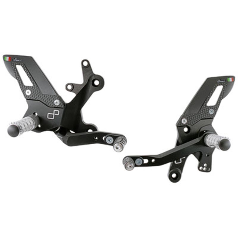 Hochwertige Fußrastenanlage mit festen oder klappbaren Fußrasten.