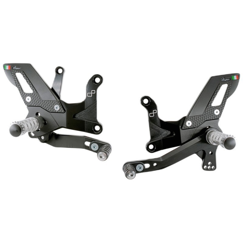 Hochwertige Fußrastenanlage mit festen oder klappbaren Fußrasten.