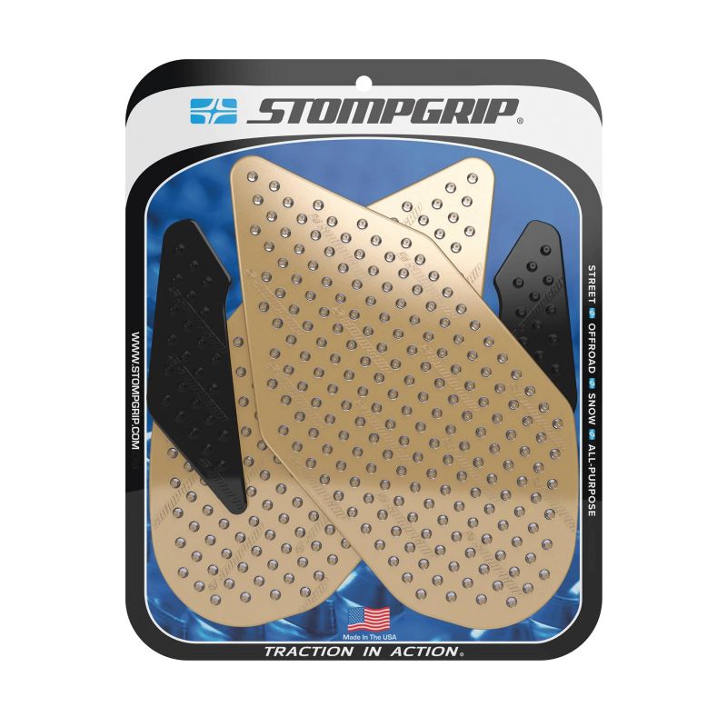 Im Jahr 2002 erweiterte STOMP Design sein Sortiment auf den Motorsportbereich und brachte die STOMPGRIP-Tankgriffe auf den Markt, die speziell für Motocross entwickelt wurden. Diese abriebfesten Griffe sollen den Fahrer im Sattel halten, indem sie sich an Hose oder Stiefel haften. Seitdem können sie auf Straßen-, Motocross- oder Quad-Maschinen verwendet werden. Sie sind zu unverzichtbaren Zubehörteilen und Verbündeten gegen Ermüdung und Wackeln geworden, unabhängig von Ihrer bevorzugten Maschine. Die Griffe sind speziell auf die Physiognomie jeder Maschine abgestimmt und werden auch abgerundet geschnitten, um vorzeitigem Ablösen vorzubeugen. Die Gummioberfläche ist entweder transparent oder schwarz, um das ästhetische Erscheinungsbild Ihres Fahrzeugs zu respektieren. Diese Produkte sind so konzipiert, dass sie sich wie Reifen abnutzen und regelmäßig ersetzt werden müssen.