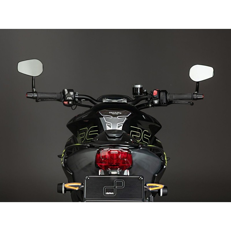 Diese aus Aluminium und Carbon gefertigten Rückspiegel zeichnen sich durch ein einzigartiges, avantgardistisches Design aus und sind perfekt für alle, die Stil und Funktionalität suchen. Dank ihrer leichten und langlebigen Konstruktion bieten sie optimale Sichtbarkeit, ohne die Ästhetik des Motorrads zu beeinträchtigen. Es gibt mehrere Befestigungsmöglichkeiten: Sie können sie am Lenker oder an den Gegengewichten befestigen. Sie können auch nach unten montiert werden, was eine größere Freiheit bei der individuellen Gestaltung und Anpassung an alle Motorradmodelle bietet.