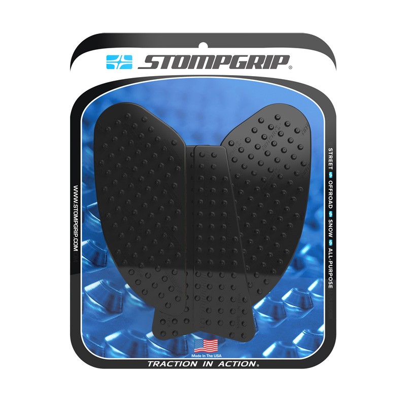 2002 erweiterte STOMP Design sein Produktsortiment um den Motorsport und brachte die speziell für Motocross entwickelten STOMPGRIP Tankpads auf den Markt. Diese griffigen Pads sorgen für sicheren Halt im Sattel, indem sie an Hose oder Stiefeln haften. Mittlerweile sind sie auch für Straßenmotorräder, Motocross-Maschinen und ATVs geeignet. Sie sind unverzichtbares Zubehör und helfen, Ermüdung und Wackeln des Fahrers zu vermeiden – unabhängig vom Motorradtyp. Die Pads sind passgenau für die Konturen jedes Motorrads geformt und abgerundet, um vorzeitiges Ablösen zu verhindern. Die Gummioberfläche ist in Transparent oder Schwarz erhältlich und passt sich so optimal der Optik Ihres Motorrads an. Wie Reifen unterliegen auch diese Pads einem gewissen Verschleiß und müssen regelmäßig ausgetauscht werden.