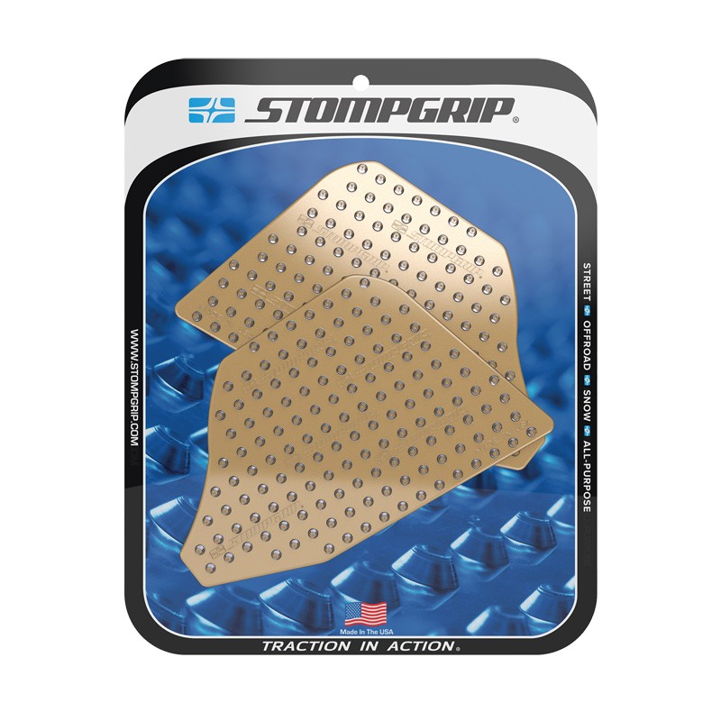 2002 erweiterte STOMP Design sein Produktsortiment um den Motorsport und brachte die speziell für Motocross entwickelten STOMPGRIP Tankpads auf den Markt. Diese griffigen Pads sorgen für sicheren Halt im Sattel, indem sie an Hose oder Stiefeln haften. Mittlerweile sind sie auch für Straßenmotorräder, Motocross-Maschinen und ATVs geeignet. Sie sind unverzichtbares Zubehör und helfen, Ermüdung und Wackeln des Fahrers zu vermeiden – unabhängig vom Motorradtyp. Die Pads sind passgenau für die Konturen jedes Motorrads geformt und abgerundet, um vorzeitiges Ablösen zu verhindern. Die Gummioberfläche ist in Transparent oder Schwarz erhältlich und passt sich so optimal der Optik Ihres Motorrads an. Wie Reifen unterliegen auch diese Pads einem gewissen Verschleiß und müssen regelmäßig ausgetauscht werden.
