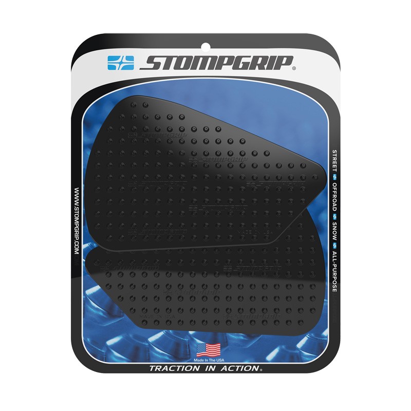 2002 erweiterte STOMP Design sein Produktsortiment um den Motorsport und brachte die speziell für Motocross entwickelten STOMPGRIP Tankpads auf den Markt. Diese griffigen Pads sorgen für sicheren Halt im Sattel, indem sie an Hose oder Stiefeln haften. Mittlerweile sind sie auch für Straßenmotorräder, Motocross-Maschinen und ATVs geeignet. Sie sind unverzichtbares Zubehör und helfen, Ermüdung und Wackeln des Fahrers zu vermeiden – unabhängig vom Motorradtyp. Die Pads sind passgenau für die Konturen jedes Motorrads geformt und abgerundet, um vorzeitiges Ablösen zu verhindern. Die Gummioberfläche ist in Transparent oder Schwarz erhältlich und passt sich so optimal der Optik Ihres Motorrads an. Wie Reifen unterliegen auch diese Pads einem gewissen Verschleiß und müssen regelmäßig ausgetauscht werden.