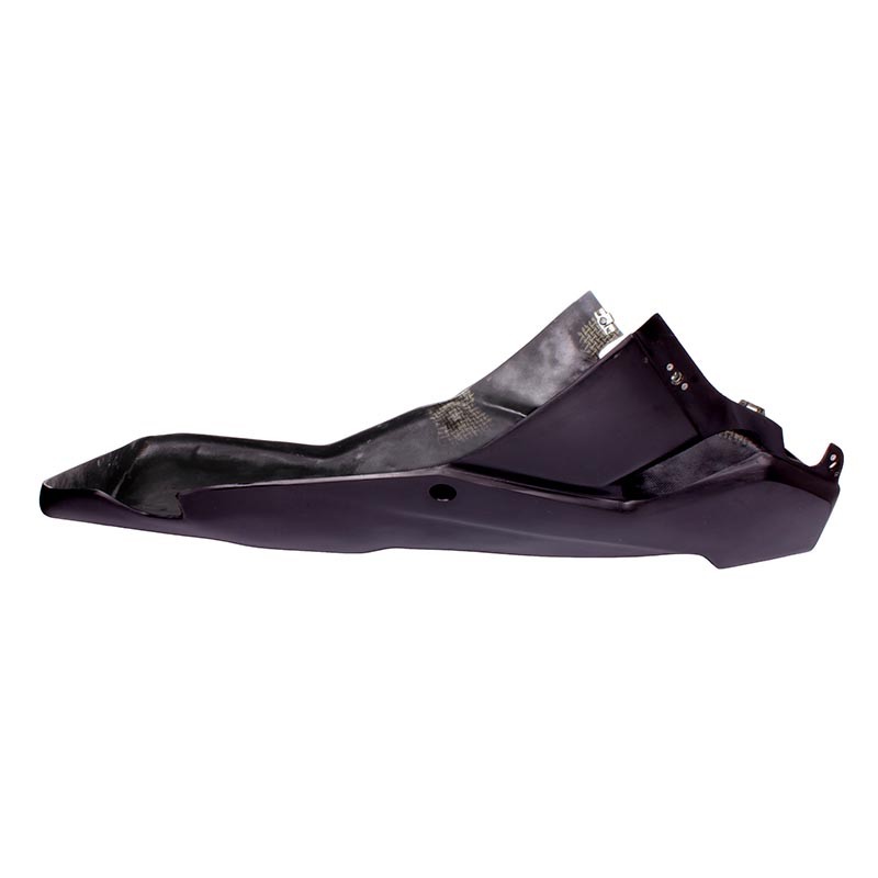 - Racing fairing + air intake - Left and right side panels - Left and right spoiler - Belly pan - Bare racing rear fairing - Molded foam upholstery on a rigid plastic base - Mounting kit + instructions - Fiberglass and black gelcoat, ready to paint - Carbon/Kevlar reinforcements at the mounting points. - The fairings are pre-drilled and the Dzus are installed. - Complete kits come with a pre-molded rear fairing and foam upholstery secured with Dzus. - FIM/FFM compliant