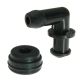 Angled outlet supplied with rubber seal.