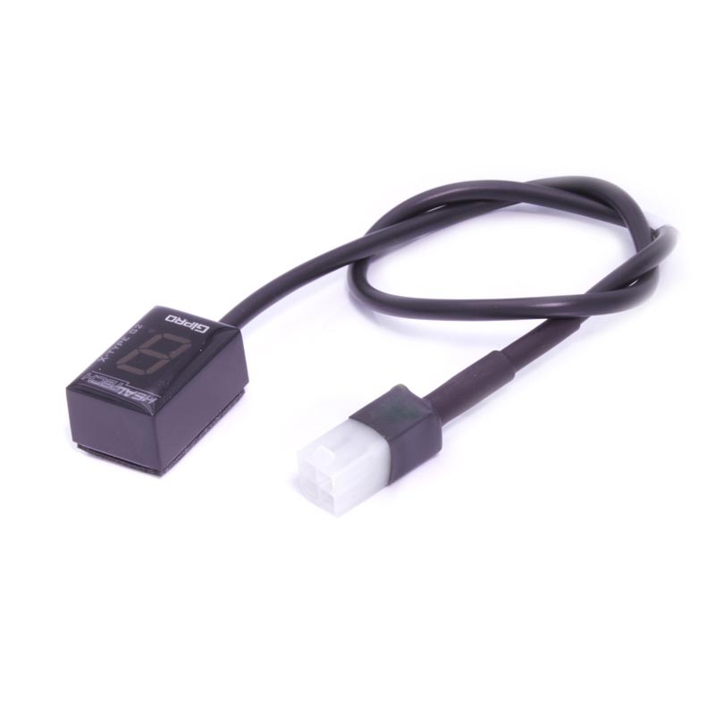 This means you connect a plug-and-play connector to your speed sensor and connect one or two wires (+12V and a wire to the CDI or crankshaft sensor). You plug it in, ride off, and your gear is displayed.