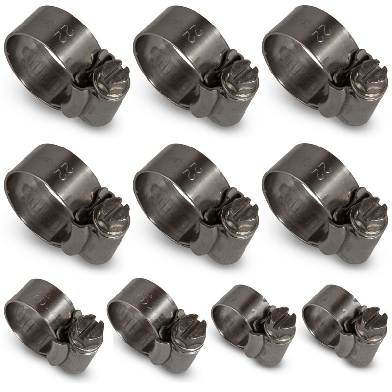 This hose clamp set allows you to securely fasten your radiator hoses.