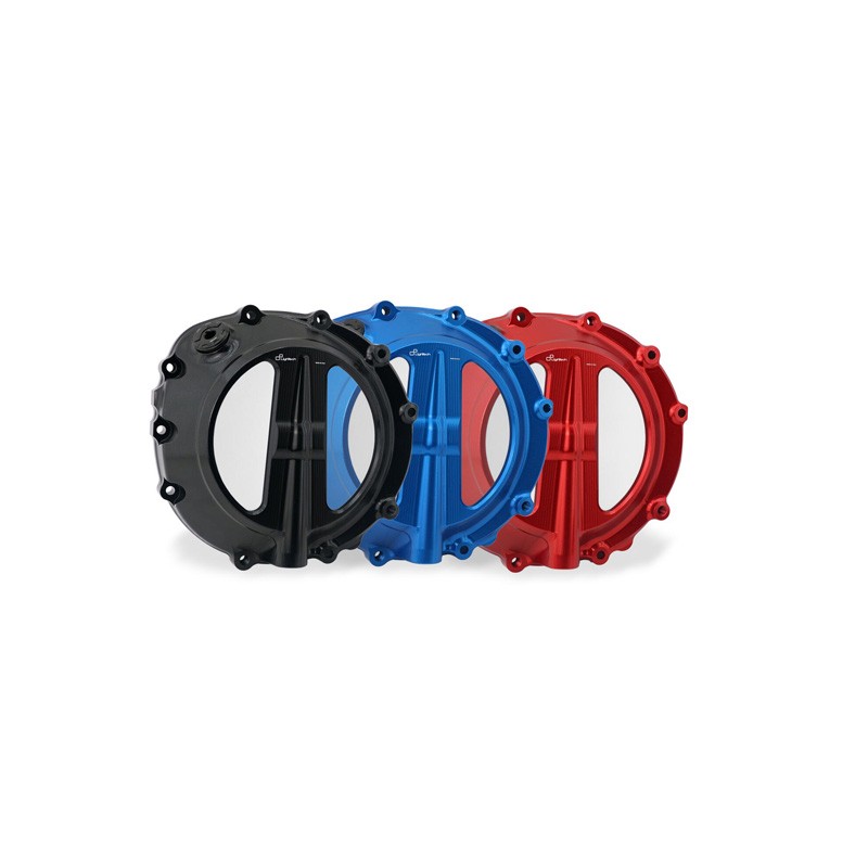 To make your bike even more customizable, Lightech offers this oil-resistant, transparent clutch cover made of machined aluminum. The transparent part is made of Lexan, a type of polycarbonate known for its exceptional impact resistance and light weight; it is also resistant to heat, weather, and UV rays. The transparent part allows you to see the clutch pressure plate.