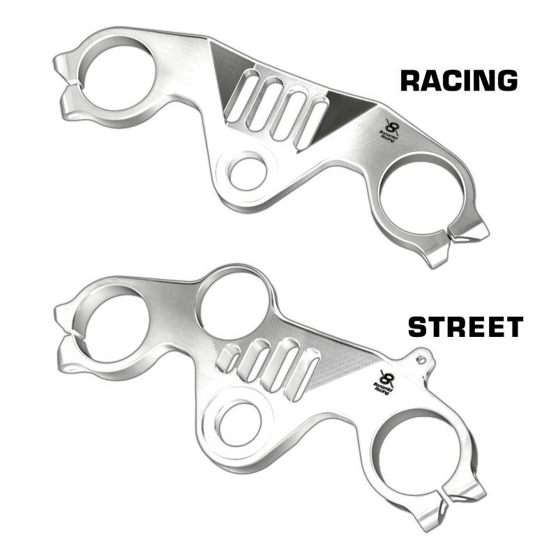 These triple clamps are manufactured exclusively from high-strength aluminum, milled from a solid block using CNC machines with 3D technology.