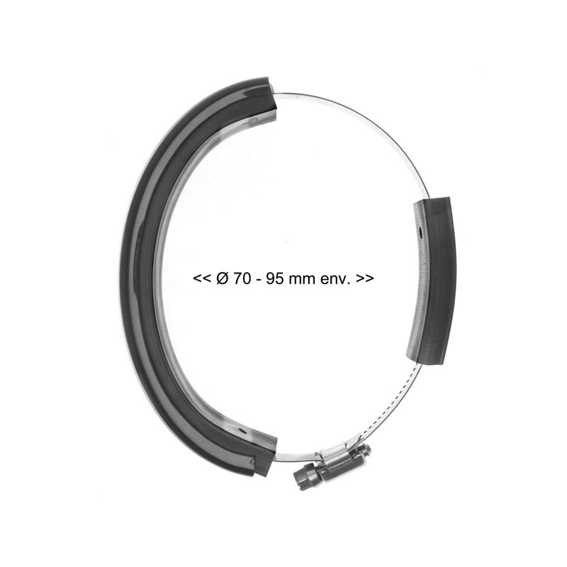 This exhaust protector works like a slider. In the event of a crash, the motorcycle slides not on the exhaust, but