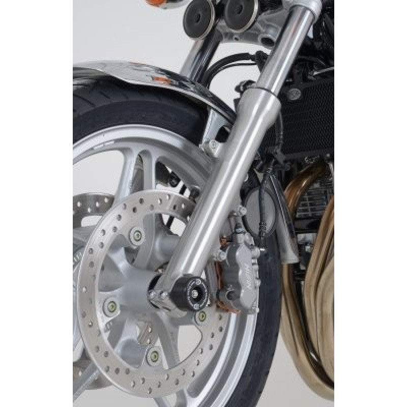 Considering the cost of replacing fork legs and brake calipers, which are easily damaged in a crash, R&G Racing fork protectors are an inexpensive solution that requires no permanent modifications to protect these expensive components.