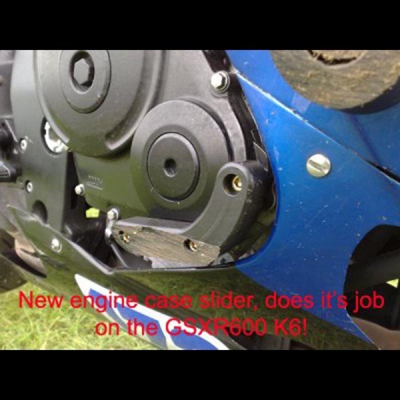 This engine cover protector works like a slider. In the event of a fall, the motorcycle slides not on the engine cover, but