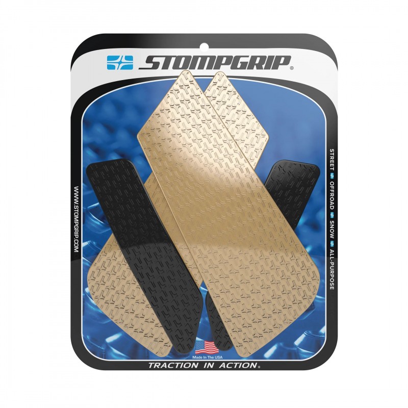 In 2002, STOMP Design extended its range to include motor sports, with the launch of STOMPGRIP tank grips, specially designed for motocross. These abrasive grips are designed to keep the rider in the saddle, by sticking to his trousers or boots. Since then, they have been used on road, cross-country and quad bikes. They're essential accessories, and allies in the fight against fatigue and tossing, whatever your preferred machine. The grips are specially designed to suit the physiognomy of each machine, and are also cut to a rounded shape to prevent early delamination. The rubber surface is either transparent or black, to match the appearance of your machine. These products are designed to wear like tyres, and should be replaced periodically.