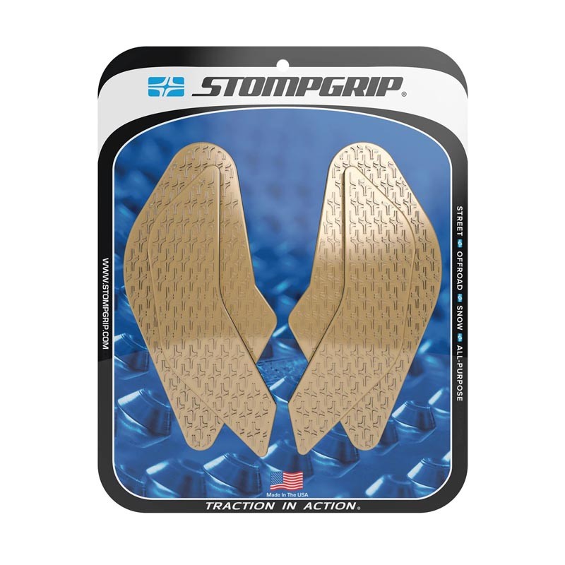 In 2002, STOMP Design extended its range to include motor sports, with the launch of STOMPGRIP tank grips, specially designed for motocross. These abrasive grips are designed to keep the rider in the saddle, by sticking to his trousers or boots. Since then, they have been used on road, cross-country and quad bikes. They're essential accessories, and allies in the fight against fatigue and tossing, whatever your preferred machine. The grips are specially designed to suit the physiognomy of each machine, and are also cut to a rounded shape to prevent early delamination. The rubber surface is either transparent or black, to match the appearance of your machine. These products are designed to wear like tyres, and should be replaced periodically.