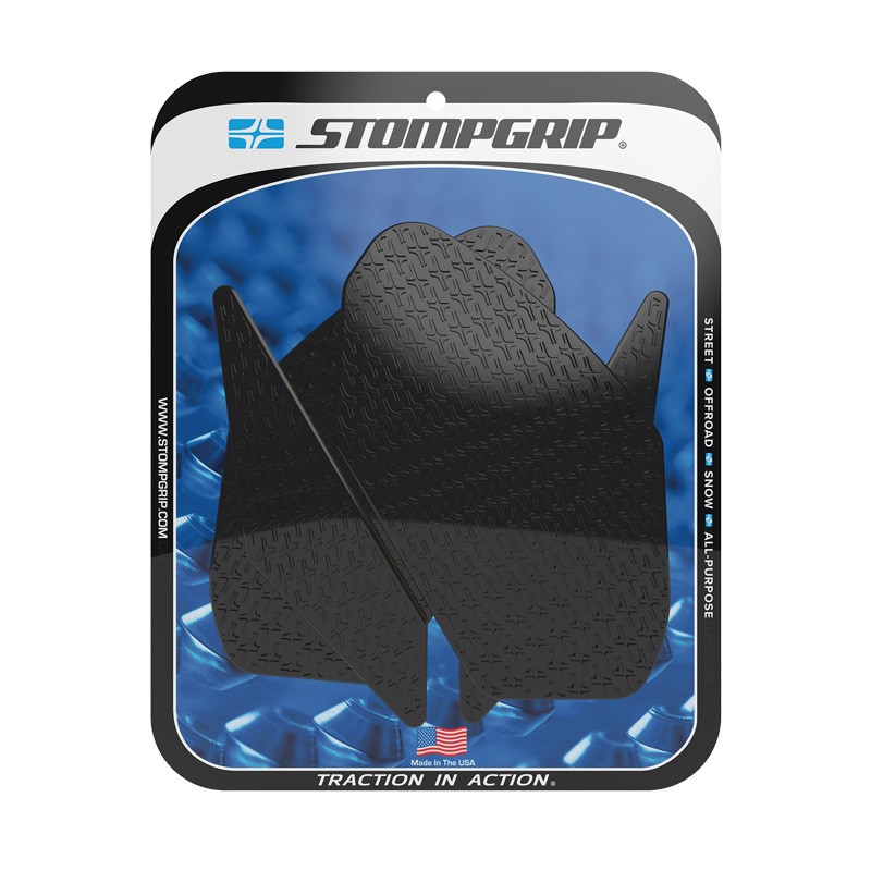 In 2002, STOMP Design expanded its range to include motorsports with the launch of STOMPGRIP tank grips, specially designed for motocross. These abrasive grips are designed to keep the rider in the saddle by sticking to their pants or boots. They have since been applied to road, motocross, and quad bikes. They are ultimately essential accessories and allies against fatigue and bouncing, whatever your favorite machine. The grips are specially designed to fit the specific features of each machine and are also rounded to prevent premature detachment. The rubber surface is available in either clear or black to complement the aesthetics of your machine. These products are designed to wear like tires, and need to be replaced periodically.