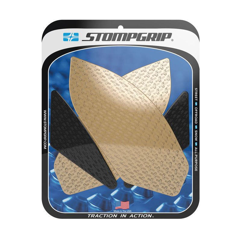 In 2002, STOMP Design extended its range to include motor sports, with the launch of STOMPGRIP tank grips, specially designed for motocross. These abrasive grips are designed to keep the rider in the saddle, by sticking to his pants or boots. Since then, they've also been used on road, cross-country and quad bikes.