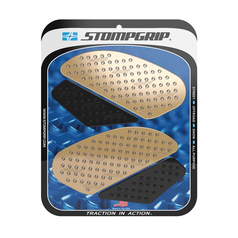In 2002, STOMP Design extended its range to include motor sports, with the launch of STOMPGRIP tank grips, specially designed for motocross. These abrasive grips are designed to keep the rider in the saddle, by sticking to his pants or boots. Since then, they've also been used on road, cross-country and quad bikes.