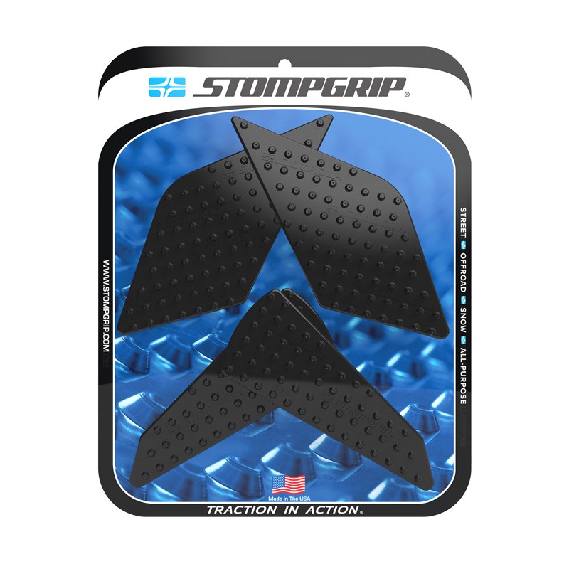 In 2002, STOMP Design expanded its product line to motorsports, launching STOMPGRIP tank grips, specifically designed for motocross. These abrasive grips are designed to keep the rider in the saddle by adhering to their pants or boots. They have since become applicable to road bikes, motocross bikes, and ATVs. Ultimately, they are essential accessories and allies against fatigue and rider wobble, regardless of your preferred motorcycle. The grips are specifically designed to fit the contours of each machine and are also rounded to prevent premature peeling. The rubber surface is available in either clear or black to complement the aesthetics of your motorcycle. These products are designed to wear out in the same way as tires, and need to be replaced periodically.