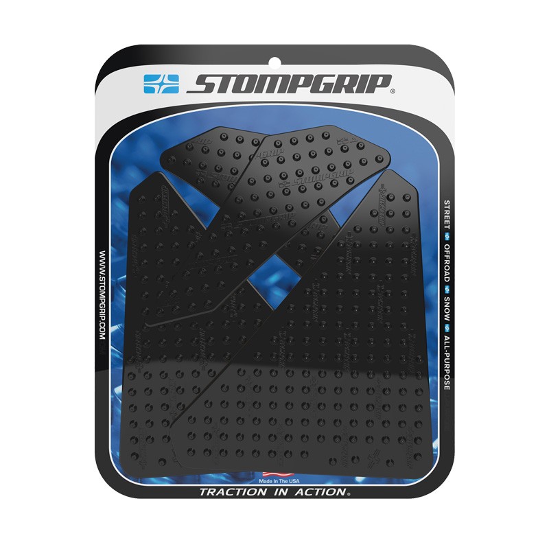 En 2002, STOMP Design élargit sa gamme jusqu'aux sports mécaniques, en lançant les grips de réservoir STOMPGRIP, spécialement conçus pour les moto-cross. Ces grips abrasifs ont pour vocation de garder le pilote en selle, en collant à son pantalon ou à ses bottes. Ils sont depuis lors applicables aux machines de route, de cross ou de quad. Ce sont finalement des accessoires indispensable, et des alliés contre la fatigue et le ballotage, quelle que soit votre machine de prédilection. Les grips sont spécialement conçus en fonction de la physionomie de chaque machine, ils sont également coupés à l'arrondis, afin d'éviter les décollements précoces. La surface en caoutchouc est soit transparente, soit noire, pour respecter l'esthétique de votre machine. Ces produits sont conçus pour s'user à la manière des pneus, et sont à remplacer périodiquement.