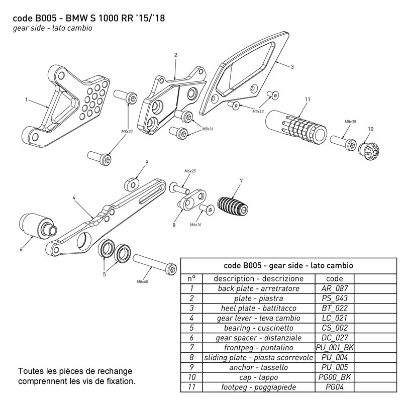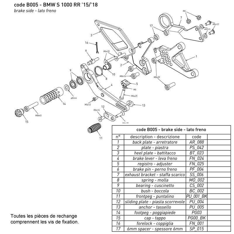 Pièce de rechange pour commandes reculées Bonamici Racing S1000RR 2015-2018.