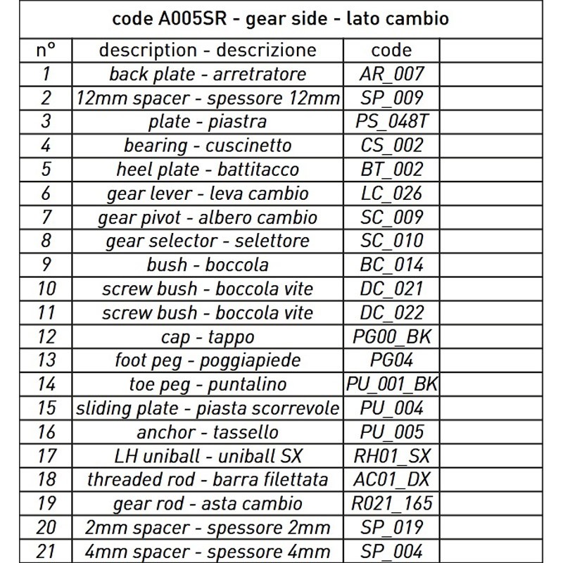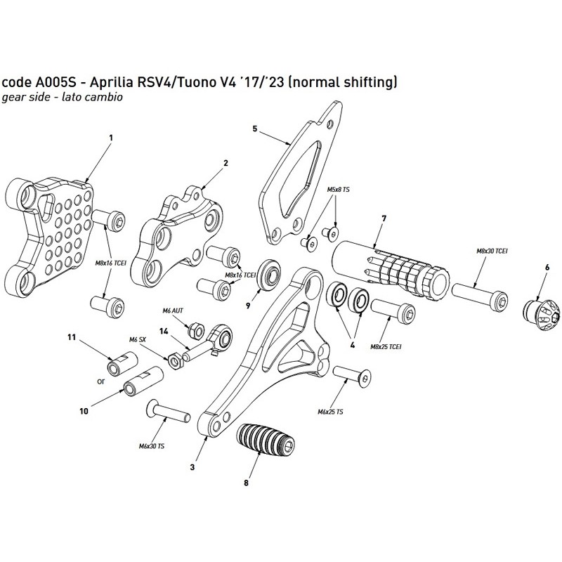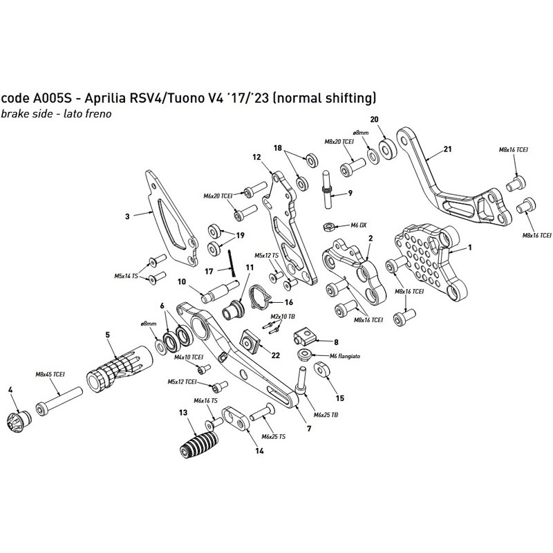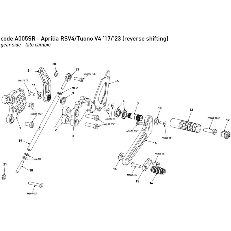 Pièces de rechange pour commandes reculées Bonamici Racing RSV4, Tuono V4 2017-2023.