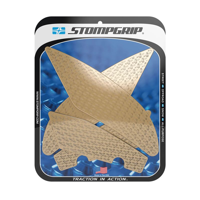 En 2002, STOMP Design élargit sa gamme jusqu'aux sports mécaniques, en lançant les grips de réservoir STOMPGRIP, spécialement conçus pour les moto-cross. Ces grips abrasifs ont pour vocation de garder le pilote en selle, en collant à son pantalon ou à ses bottes. Ils sont depuis lors applicables aux machines de route, de cross ou de quad. Ce sont finalement des accessoires indispensable, et des alliés contre la fatigue et le ballotage, quelle que soit votre machine de prédilection. Les grips sont spécialement conçus en fonction de la physionomie de chaque machine, ils sont également coupés à l'arrondis, afin d'éviter les décollements précoces. La surface en caoutchouc est soit transparente, soit noire, pour respecter l'esthétique de votre machine. Ces produits sont conçus pour s'user à la manière des pneus, et sont à remplacer périodiquement.
