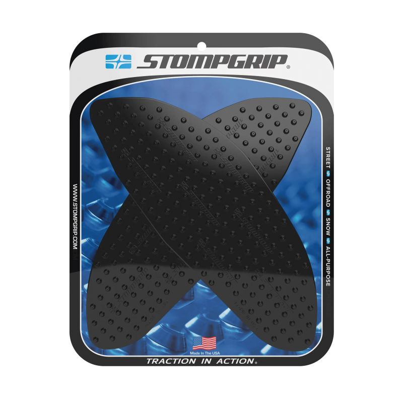 En 2002, STOMP Design élargit sa gamme jusqu'aux sports mécaniques, en lançant les grips de réservoir STOMPGRIP, spécialement conçus pour les moto-cross. Ces grips abrasifs ont pour vocation de garder le pilote en selle, en collant à son pantalon ou à ses bottes. Ils sont depuis lors applicables aux machines de route, de cross ou de quad. Ce sont finalement des accessoires indispensable, et des alliés contre la fatigue et le ballotage, quelle que soit votre machine de prédilection. Les grips sont spécialement conçus en fonction de la physionomie de chaque machine, ils sont également coupés à l'arrondis, afin d'éviter les décollements précoces. La surface en caoutchouc est soit transparente, soit noire, pour respecter l'esthétique de votre machine. Ces produits sont conçus pour s'user à la manière des pneus, et sont à remplacer périodiquement.