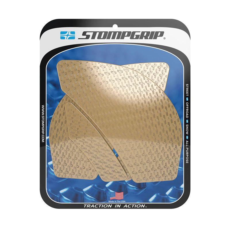 En 2002, STOMP Design élargit sa gamme jusqu'aux sports mécaniques, en lançant les grips de réservoir STOMPGRIP, spécialement conçus pour les moto-cross. Ces grips abrasifs ont pour vocation de garder le pilote en selle, en collant à son pantalon ou à ses bottes. Ils sont depuis lors applicables aux machines de route, de cross ou de quad. Ce sont finalement des accessoires indispensable, et des alliés contre la fatigue et le ballotage, quelle que soit votre machine de prédilection. Les grips sont spécialement conçus en fonction de la physionomie de chaque machine, ils sont également coupés à l'arrondis, afin d'éviter les décollements précoces. La surface en caoutchouc est soit transparente, soit noire, pour respecter l'esthétique de votre machine. Ces produits sont conçus pour s'user à la manière des pneus, et sont à remplacer périodiquement.