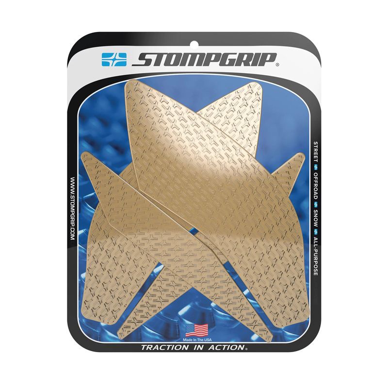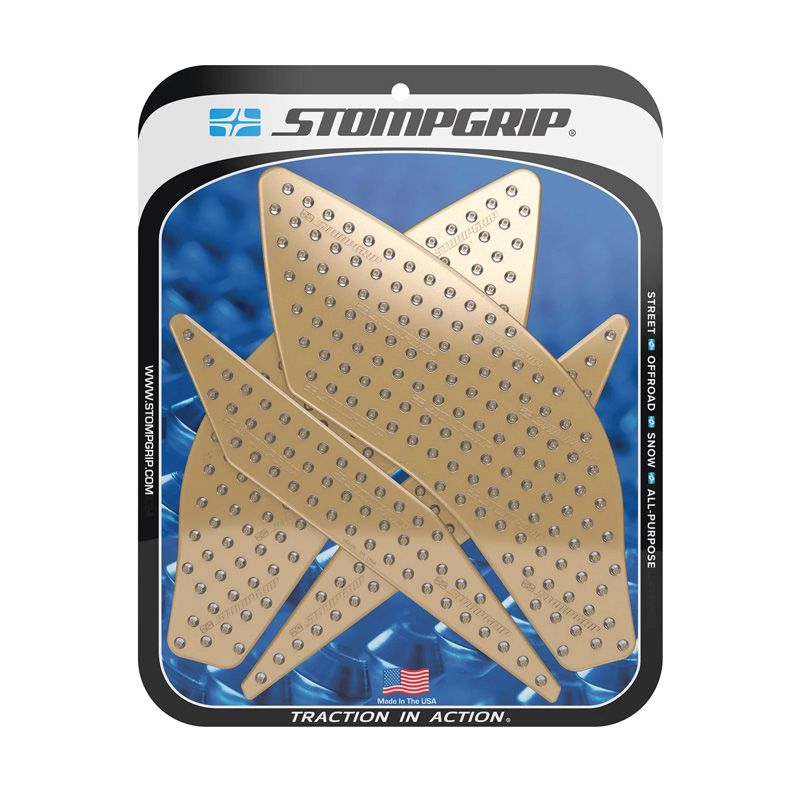 En 2002, STOMP Design élargit sa gamme jusqu'aux sports mécaniques, en lançant les grips de réservoir STOMPGRIP, spécialement conçus pour les moto-cross. Ces grips abrasifs ont pour vocation de garder le pilote en selle, en collant à son pantalon ou à ses bottes. Ils sont depuis lors applicables aux machines de route, de cross ou de quad. Ce sont finalement des accessoires indispensable, et des alliés contre la fatigue et le ballotage, quelle que soit votre machine de prédilection. Les grips sont spécialement conçus en fonction de la physionomie de chaque machine, ils sont également coupés à l'arrondis, afin d'éviter les décollements précoces. La surface en caoutchouc est soit transparente, soit noire, pour respecter l'esthétique de votre machine. Ces produits sont conçus pour s'user à la manière des pneus, et sont à remplacer périodiquement.