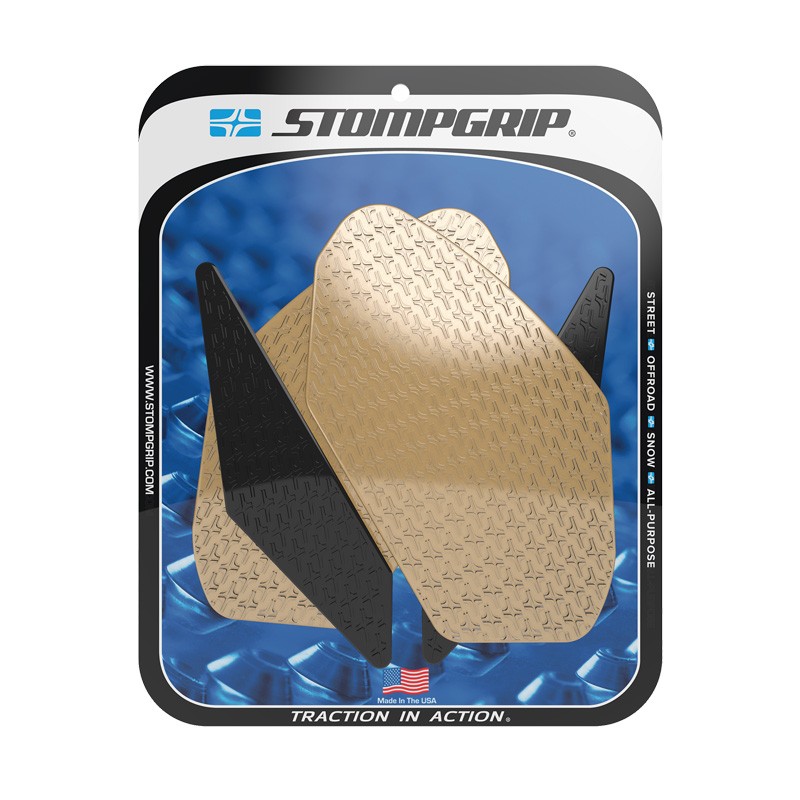 En 2002, STOMP Design élargit sa gamme jusqu'aux sports mécaniques, en lançant les grips de réservoir STOMPGRIP, spécialement conçus pour les moto-cross. Ces grips abrasifs ont pour vocation de garder le pilote en selle, en collant à son pantalon ou à ses bottes. Ils sont depuis lors applicables aux machines de route, de cross ou de quad. Ce sont finalement des accessoires indispensable, et des alliés contre la fatigue et le ballotage, quelle que soit votre machine de prédilection. Les grips sont spécialement conçus en fonction de la physionomie de chaque machine, ils sont également coupés à l'arrondis, afin d'éviter les décollements précoces. La surface en caoutchouc est soit transparente, soit noire, pour respecter l'esthétique de votre machine. Ces produits sont conçus pour s'user à la manière des pneus, et sont à remplacer périodiquement.