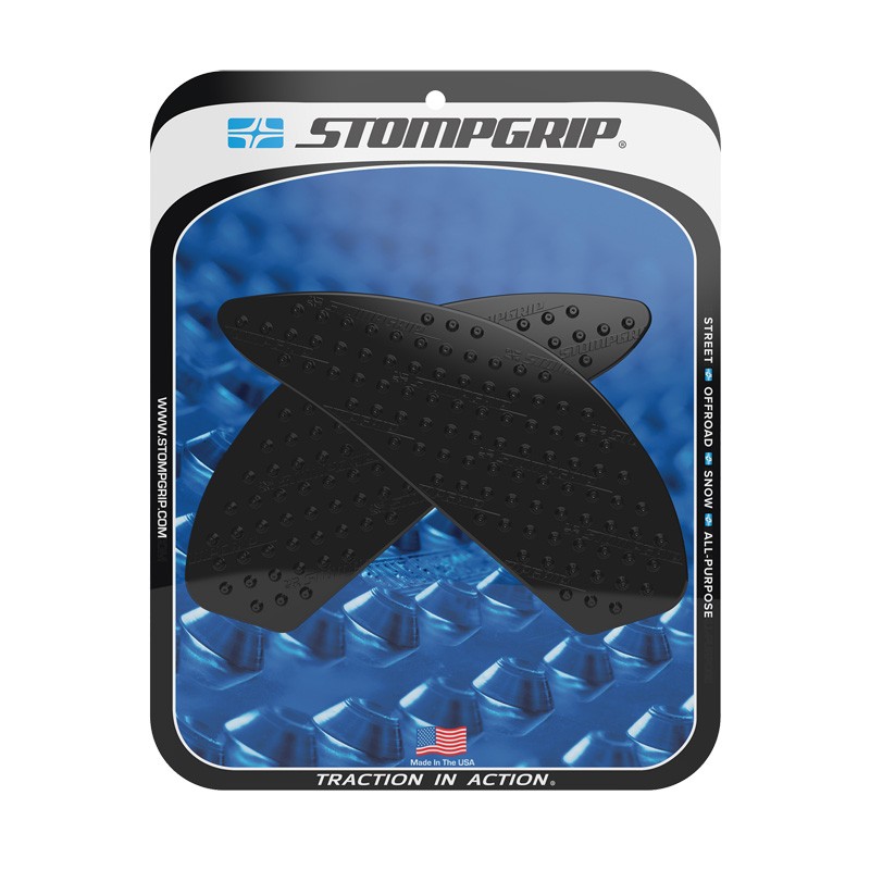En 2002, STOMP Design élargit sa gamme jusqu'aux sports mécaniques, en lançant les grips de réservoir STOMPGRIP, spécialement conçus pour les moto-cross. Ces grips abrasifs ont pour vocation de garder le pilote en selle, en collant à son pantalon ou à ses bottes. Ils sont depuis lors applicables aux machines de route, de cross ou de quad. Ce sont finalement des accessoires indispensable, et des alliés contre la fatigue et le ballotage, quelle que soit votre machine de prédilection. Les grips sont spécialement conçus en fonction de la physionomie de chaque machine, ils sont également coupés à l'arrondis, afin d'éviter les décollements précoces. La surface en caoutchouc est soit transparente, soit noire, pour respecter l'esthétique de votre machine. Ces produits sont conçus pour s'user à la manière des pneus, et sont à remplacer périodiquement.